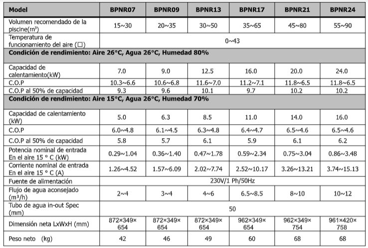 - Bomba de calor con potencias desde 7 hasta 24 Kw.